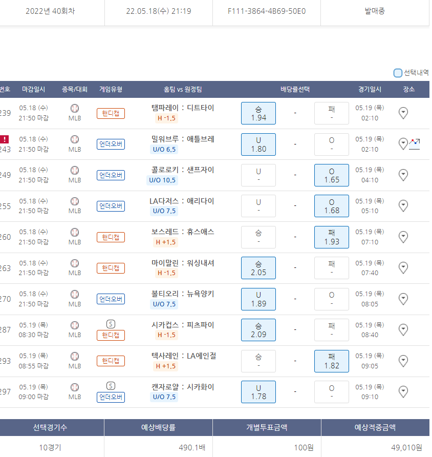 | 220519 승부식40회차 MLB (2) | 2022.05.19 |