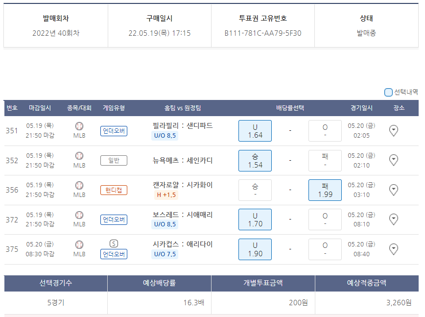 | 220520 승부식41회차 MLB (1) | 2022.05.20 |