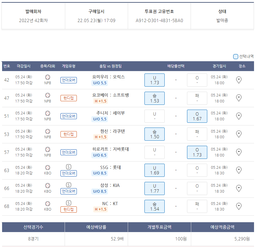 | 220525 승부식42회차 야구토토 (10) | 2022.05.25 |