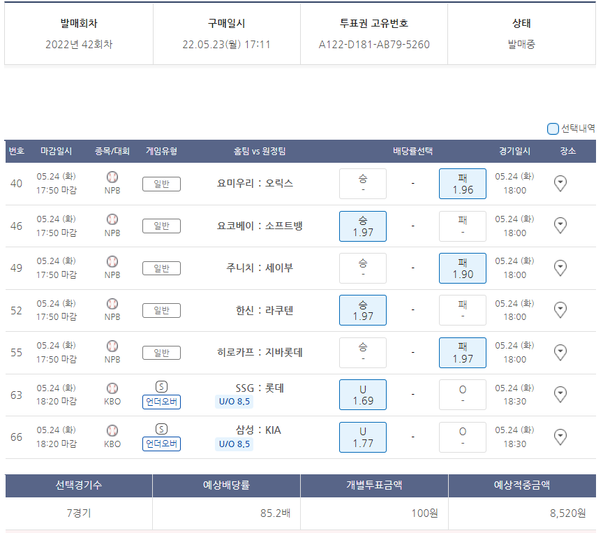 | 220520 승부식41회차 야구토토 (7) | 2022.05.20 |