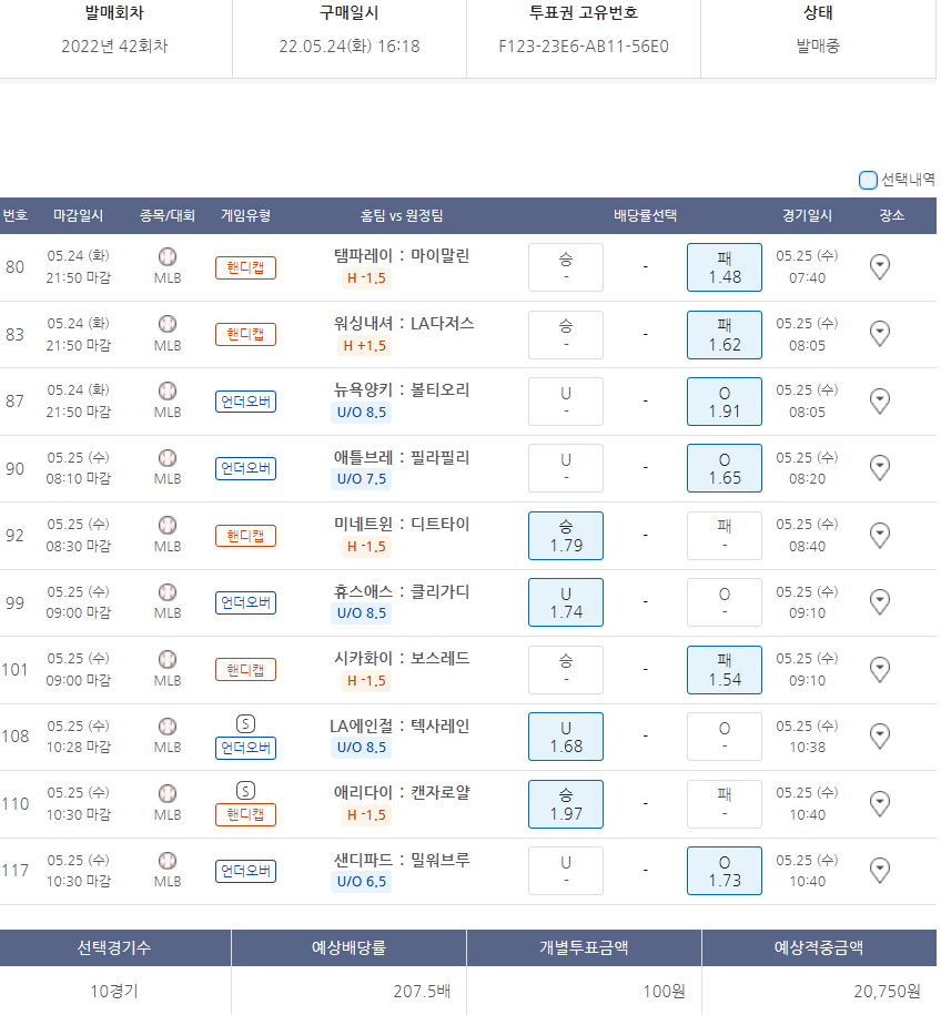 | 220520 승부식41회차 MLB (1) | 2022.05.20 |