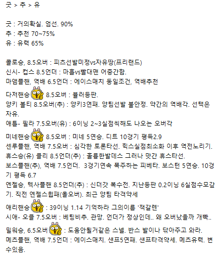 보스플핸(추), 역배 7.5언더. 3경기연속 폭주하는 피베타. 보스턴 5연승. 10경기 평득 6.7
