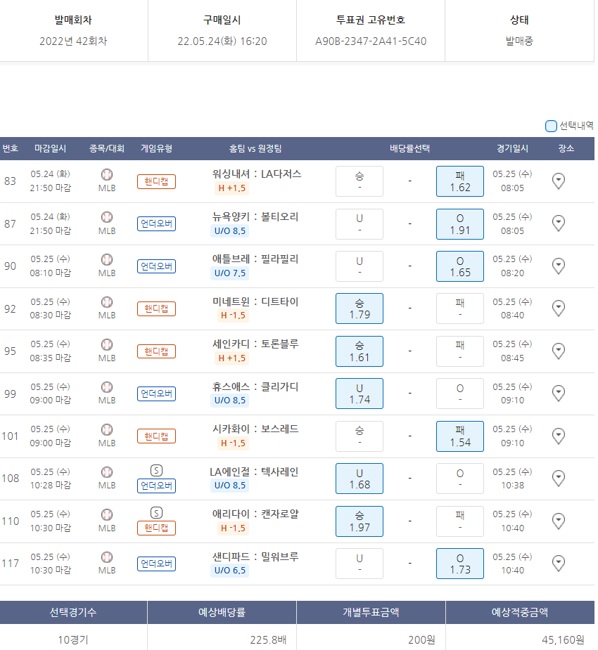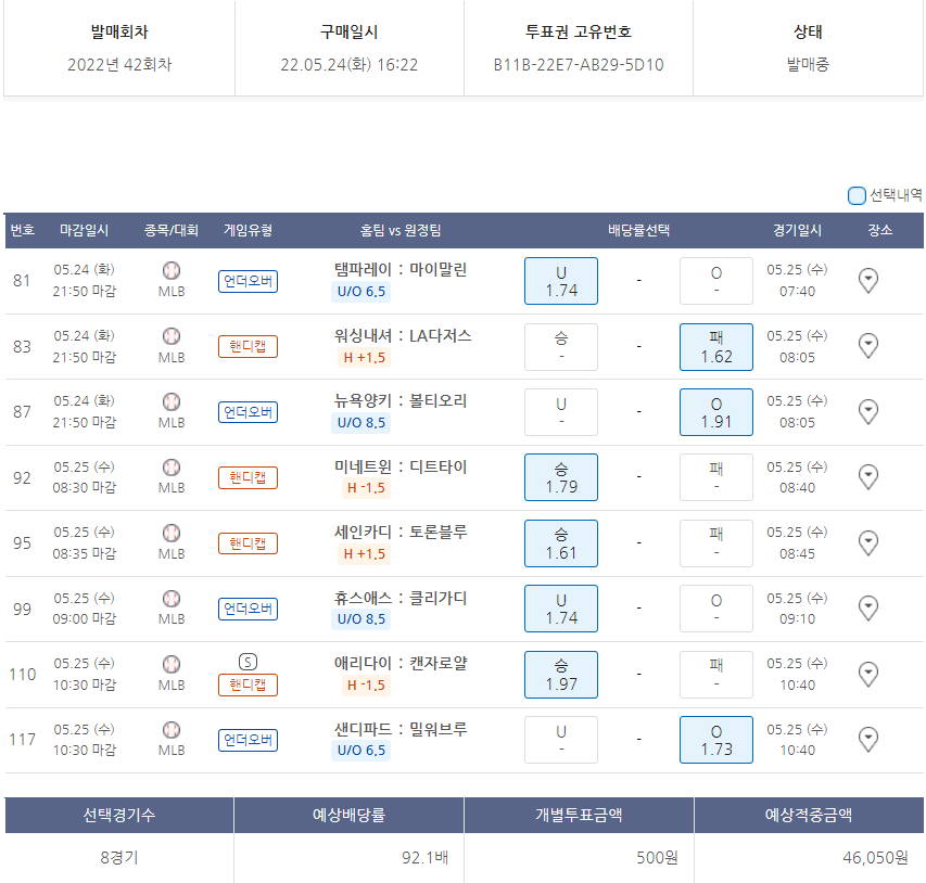 | 220526 승부식42회차 MLB (8) | 2022.05.26 |
