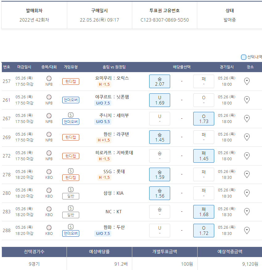 | 220525 승부식42회차 야구토토 (10) | 2022.05.25 |