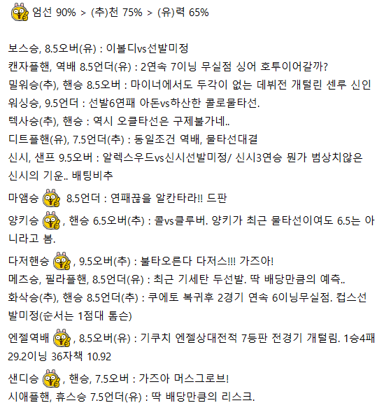 양키승(굿), 핸승 6.5오버(추) : 콜vs클루버. 양키가 최근 물타선이여도 6.5는 아니라고 봄.