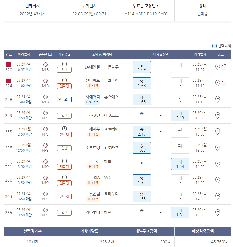| 220531 승부식44회차 야구토토 (3) | 2022.05.30 |