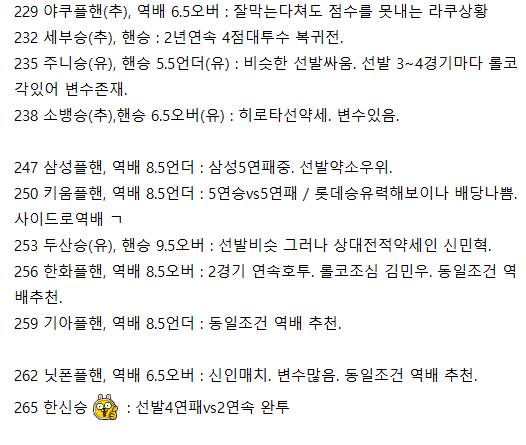 259 기아플핸, 역배 8.5언더 : 동일조건 역배 추천.