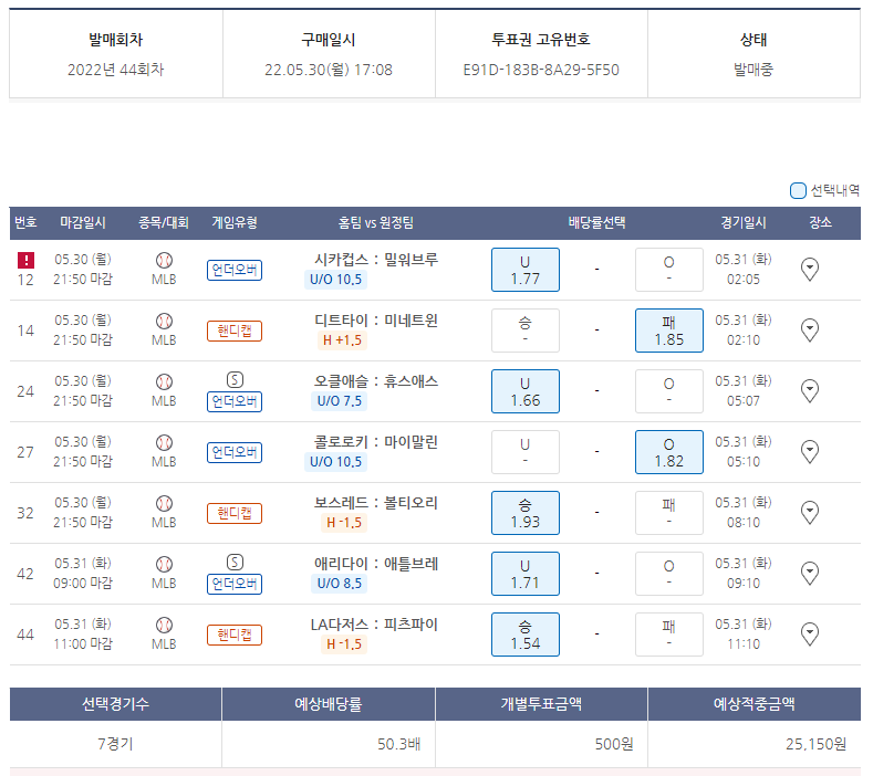 | 220601 승부식44회차 MLB (8) | 2022.06.01 |