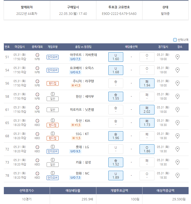 | 220602 승부식44회차 야구토토 (4) | 2022.06.02 |
