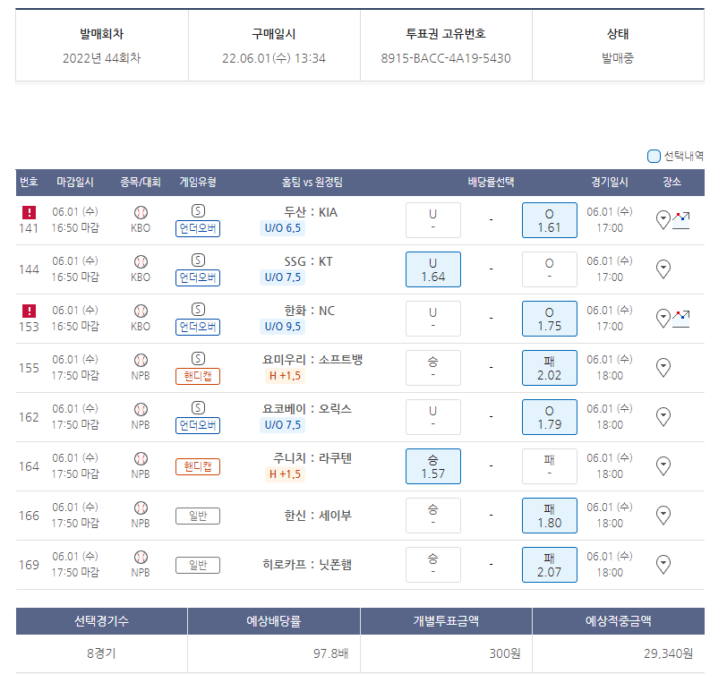 | 220602 승부식44회차 야구토토 (4) | 2022.06.02 |