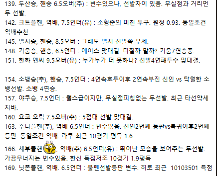 142. 크트플핸, 역배, 7.5언더(유) : 소형준의 미친 투구. 원정 0.93. 동일조건 역배추천.