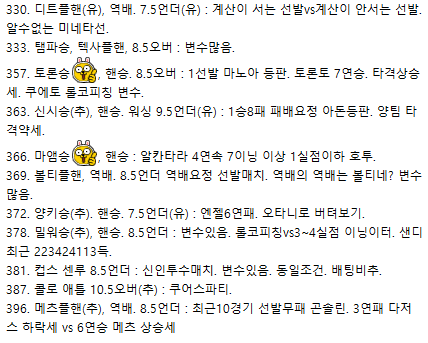 369. 볼티플핸, 역배. 8.5언더 역배요정 선발매치. 역배의 역배는 볼티네? 변수많음.