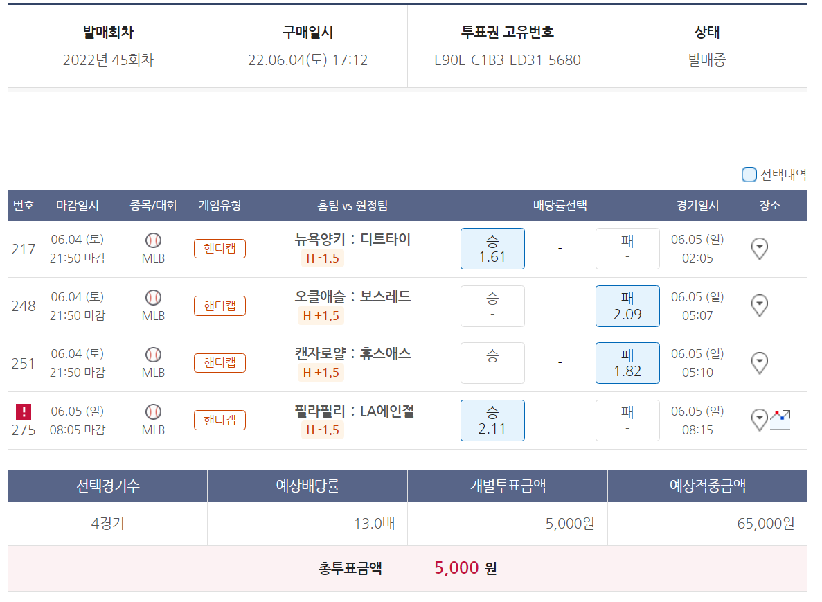 | 220601 승부식44회차 MLB (8) | 2022.06.01 |
