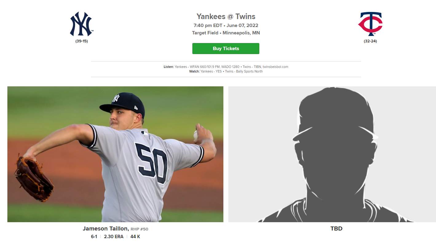 1순위 양키핸승 : 코르테스 등판은 아니네요.