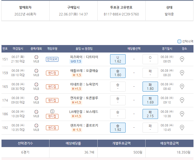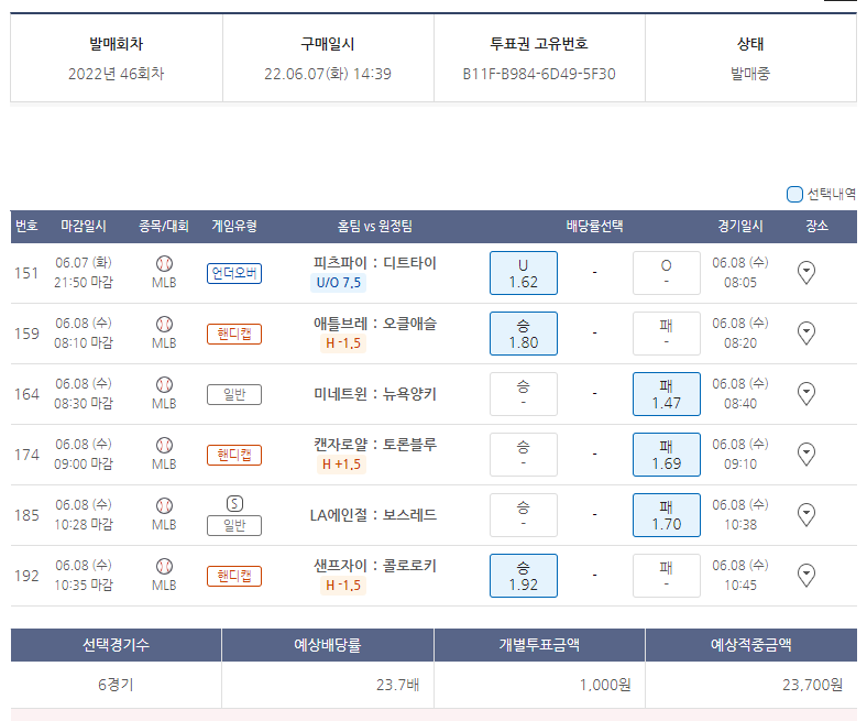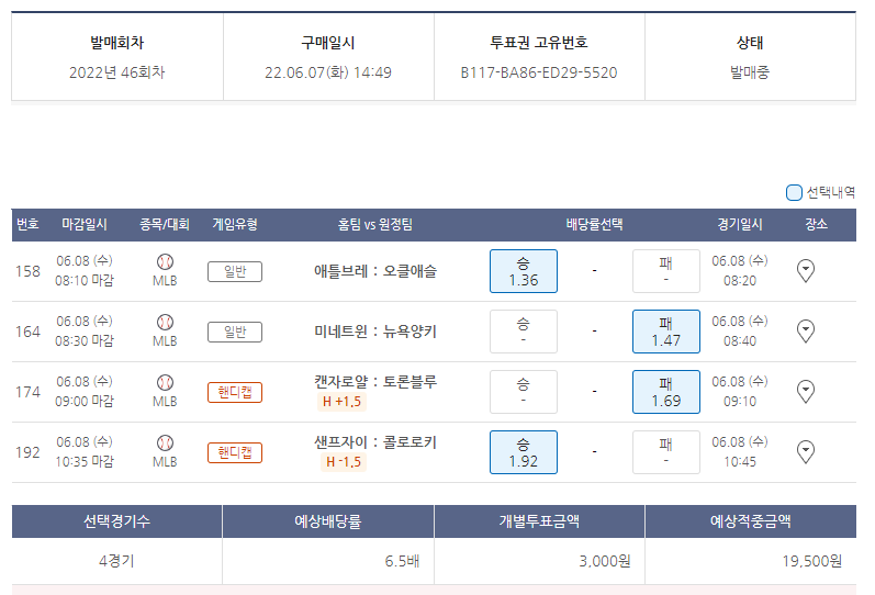 | 220606 승부식46회차 MLB (12) | 2022.06.06 |