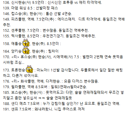 185. 보스승(추), 핸승(사) : 못먹어도고! 다만, 슬슬 연패깨질때되서 무조건 넣지말고 좀만 넣으십셔 ㅋㅋ 슬슬 연패깨질듯