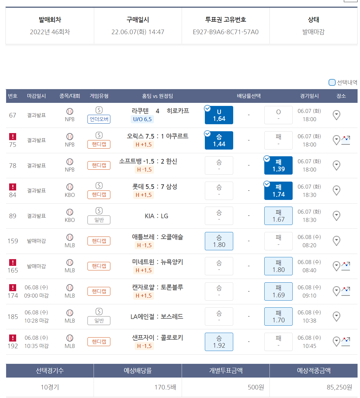 | 220610 승부식47회차 야구토토 (6) | 2022.06.10 |