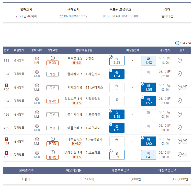 | 220608 승부식46회차 야구토토 (5) | 2022.06.08 |