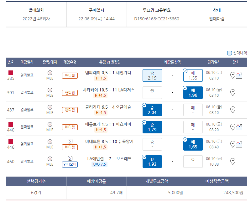 | 220609 승부식46회차 야구토토 (6) | 2022.06.09 |