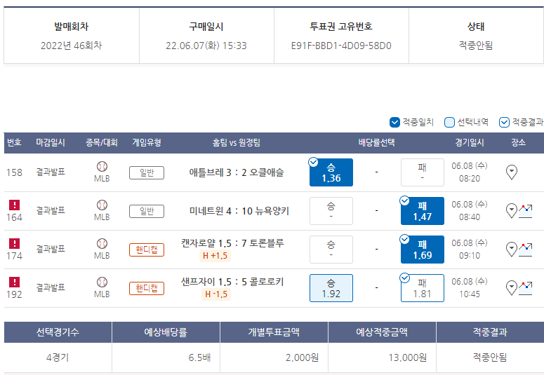 21/8/23~28 4째주 주간 MLB 프로토 분석 결과 (2) | 2021.08.29 |