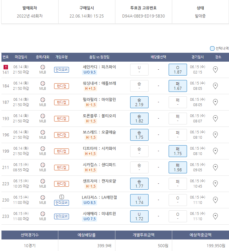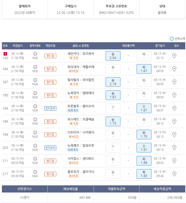 | 220616 승부식48회차 MLB (적중) (2) | 2022.06.16 |