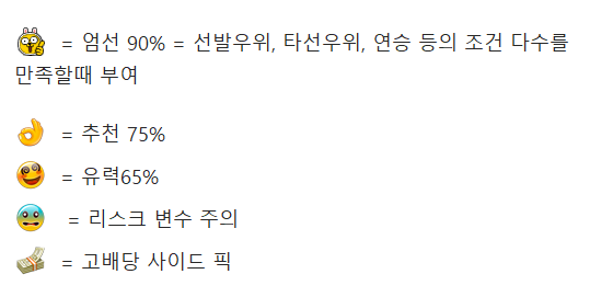 (굿) = 엄선 90% = 선발우위, 타선우위, 연승 등의 조건 다수를 만족할때 부여