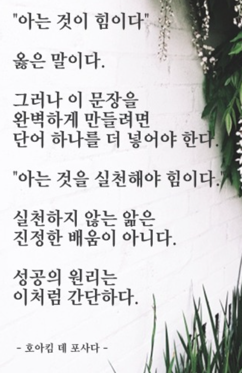 인생의 가치는 지식이 아니라, 아는 것을 실천하는 것에 있다