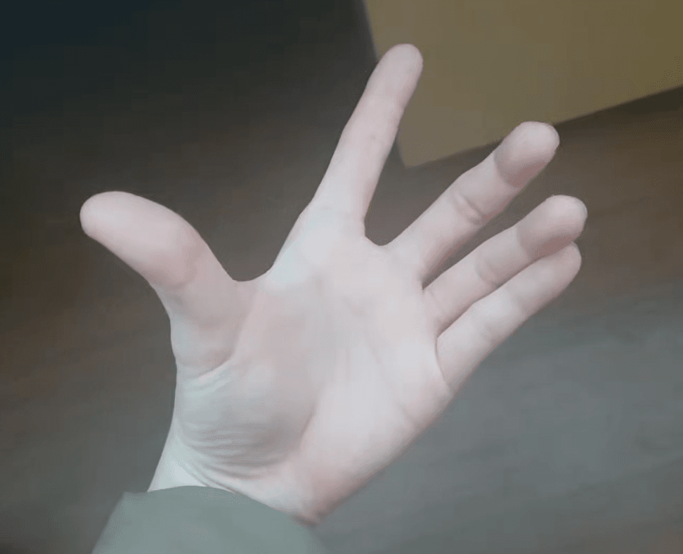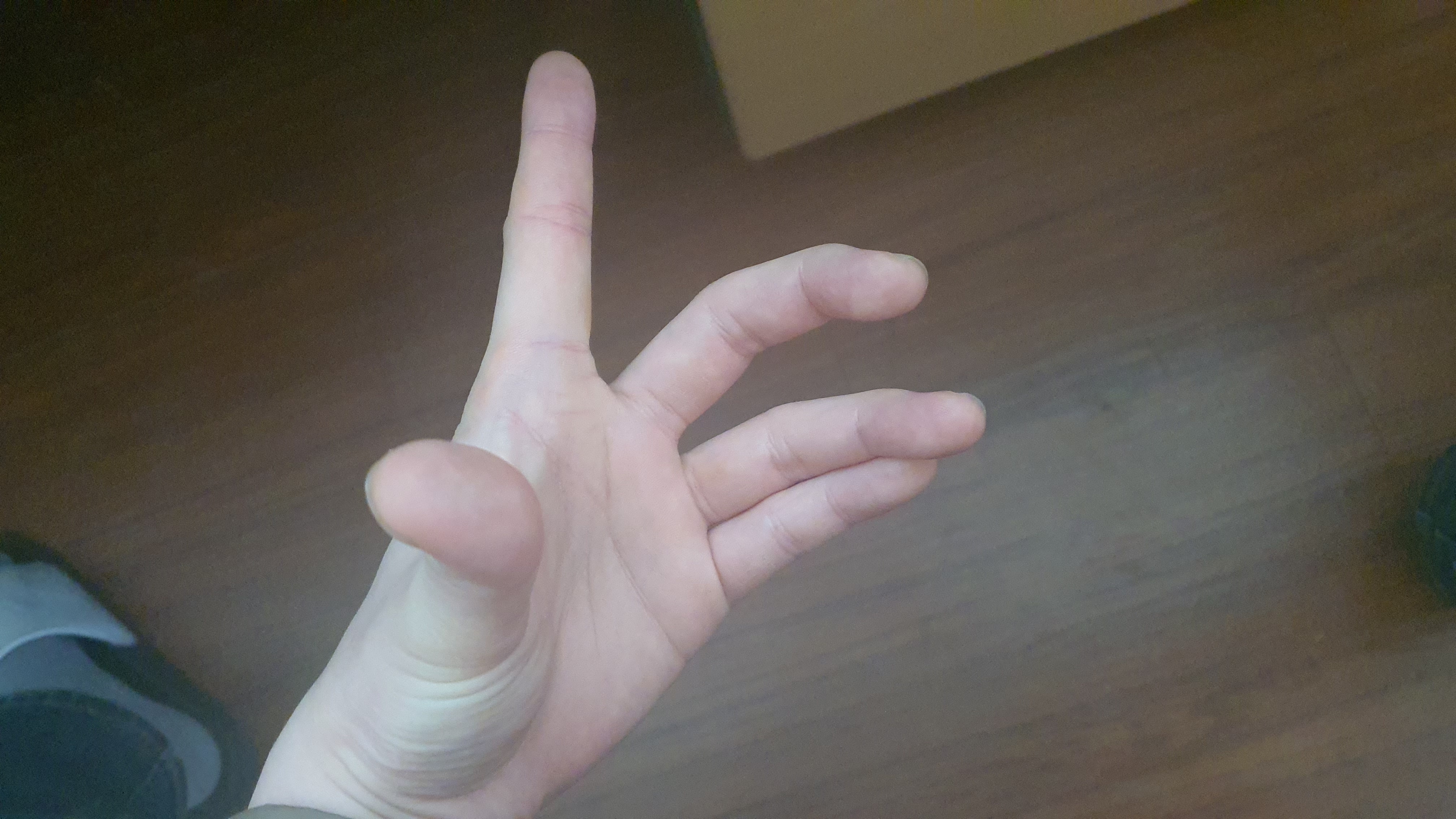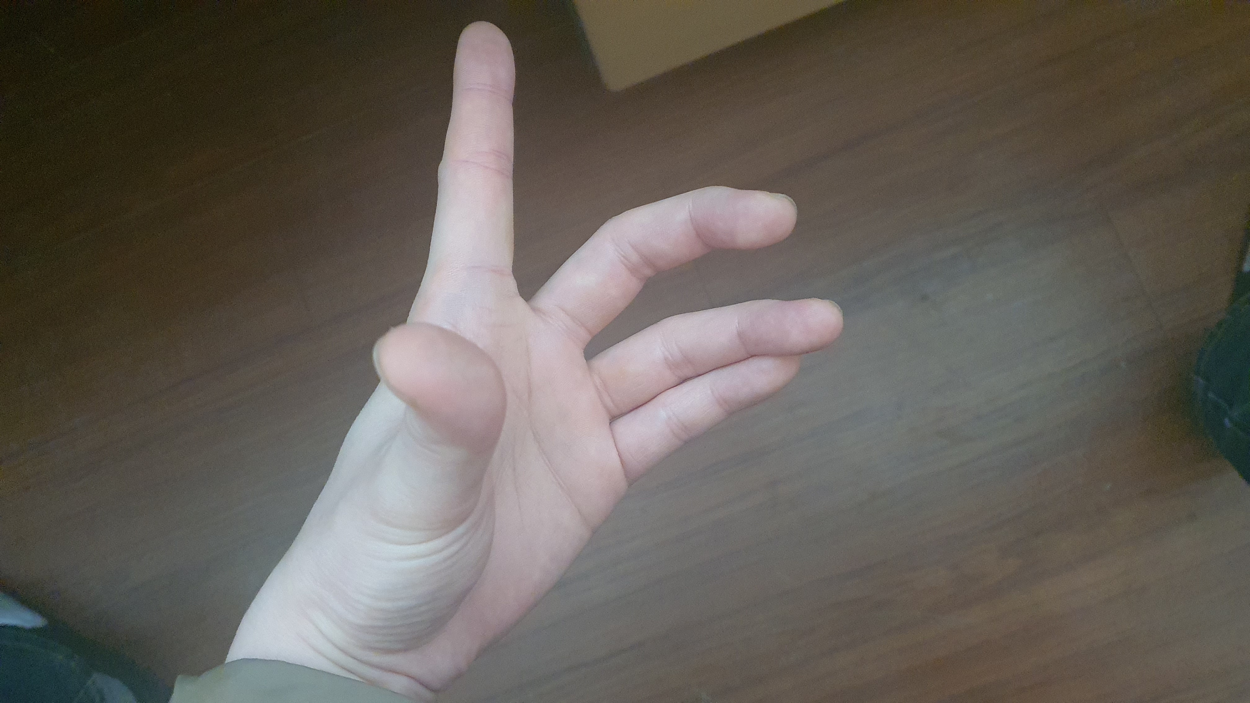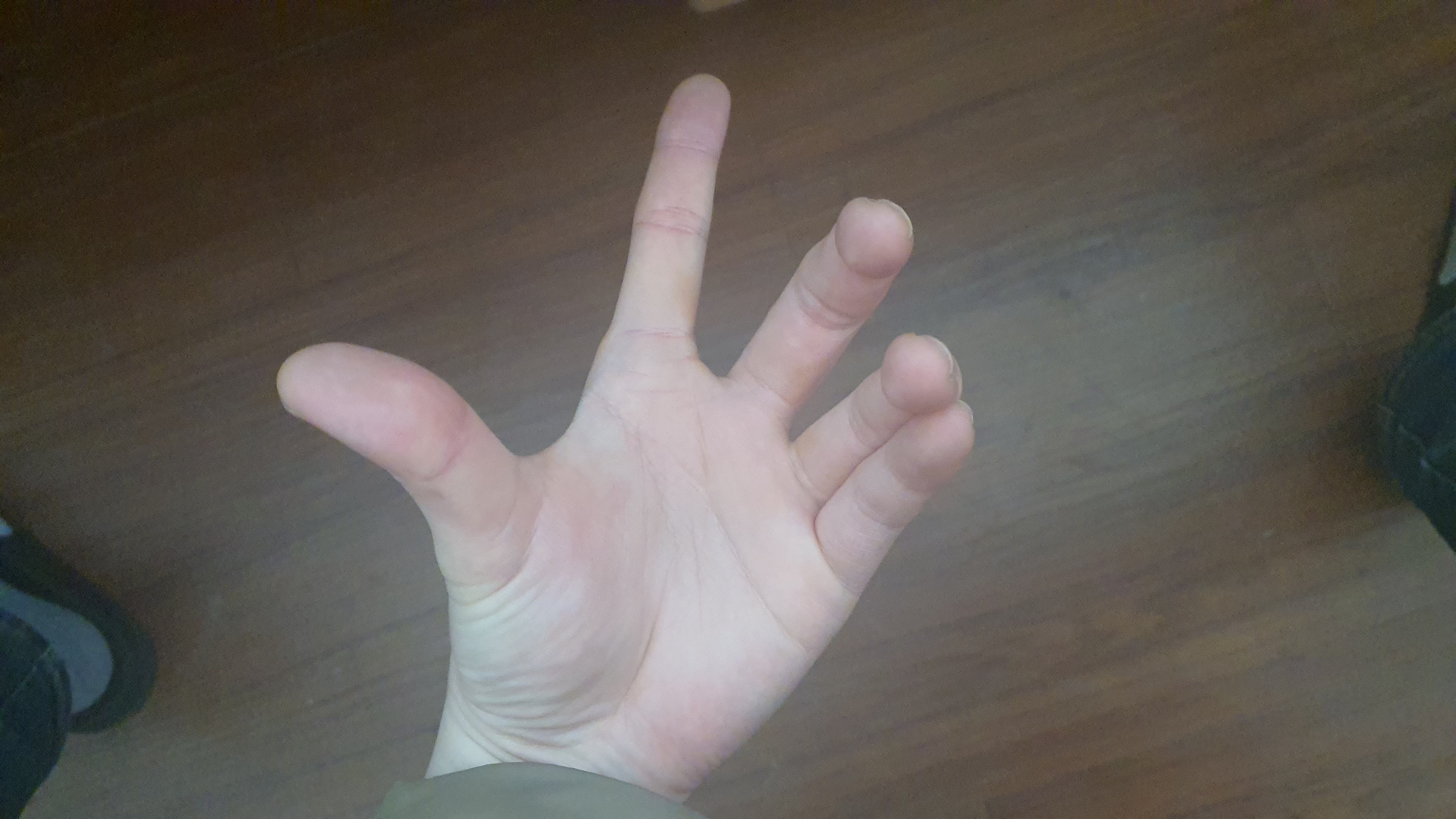엄지의 각과 새끼의 손가락의 ㄷ자 각이 유지되면서도