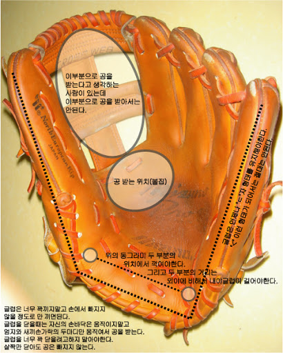 글러브를 쓸때는 엄지와 약지마디쪽 힘만으로