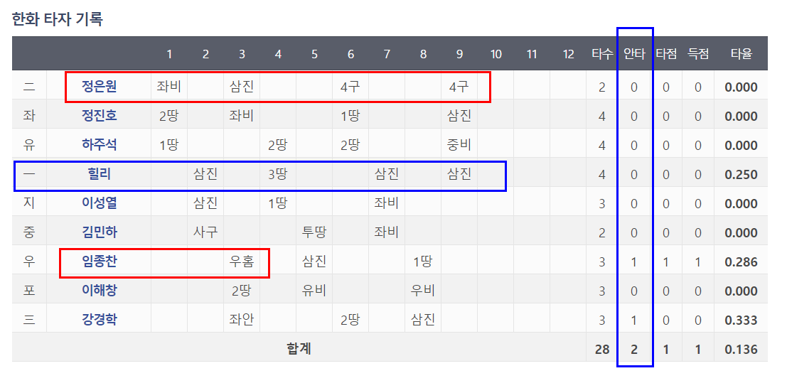 물론 한화타선이라는것을 잊어선안된다..