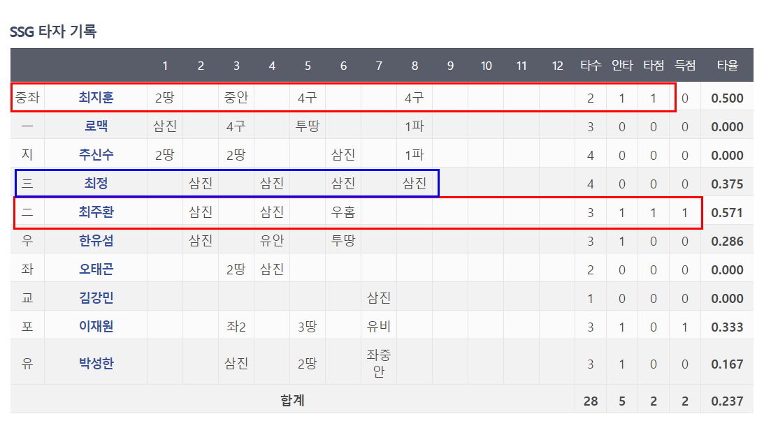 휴식일이였던 월요일에 뭘 잘못먹은건지 최정의 4삼진이 놀랍기만하다..