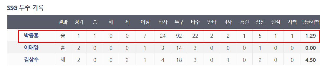 다만, SSG타선의 위용때문에 투구수 관리를 하지 못한것이 유일한 흠