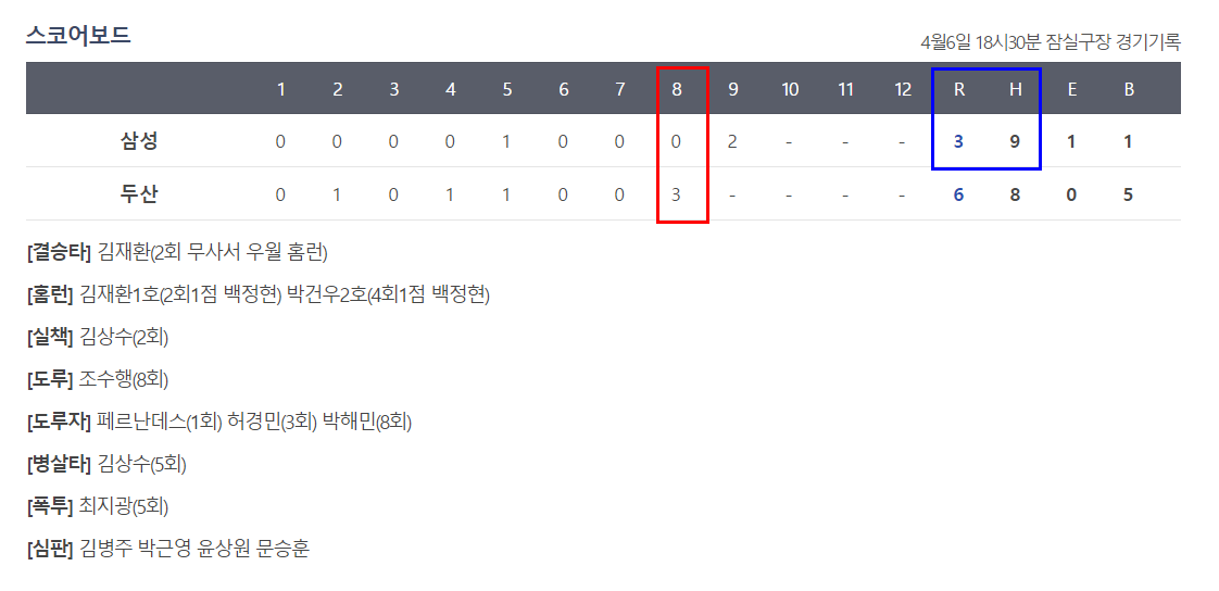 4회말 두산의 추가점