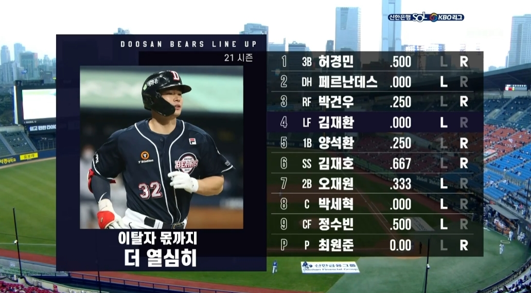 - 4번 좌익수 김재환 좌