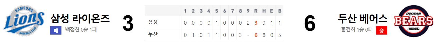 양팀 선발투수는 백정현과 최원준. 외국인 에이스 투수들간의 맞대결에 비하면 무게감이 상당히 떨어지는 두 투수들간의 대결이다. 하지만 경기는 의외로 팽팽한 투수전이 진행되며 경기 종반까지 확실한 승기를 잡지 못했다. 삼성이 조금씩 밀리더니 결국 불펜싸움에서 오승환을 투입하는 초강수를 뒀지만 컨디션이 좋지 않았을까...? 과연 경기는 어떻게 됐을까?