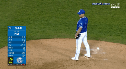 8회말 위기상황이 되자, 허삼영감독은 뜬금없이 오승환 등판시킨다.