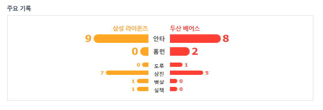 두산보다 더많은 안타를 치고도 점수를 내지 못한 삼성의 응집력