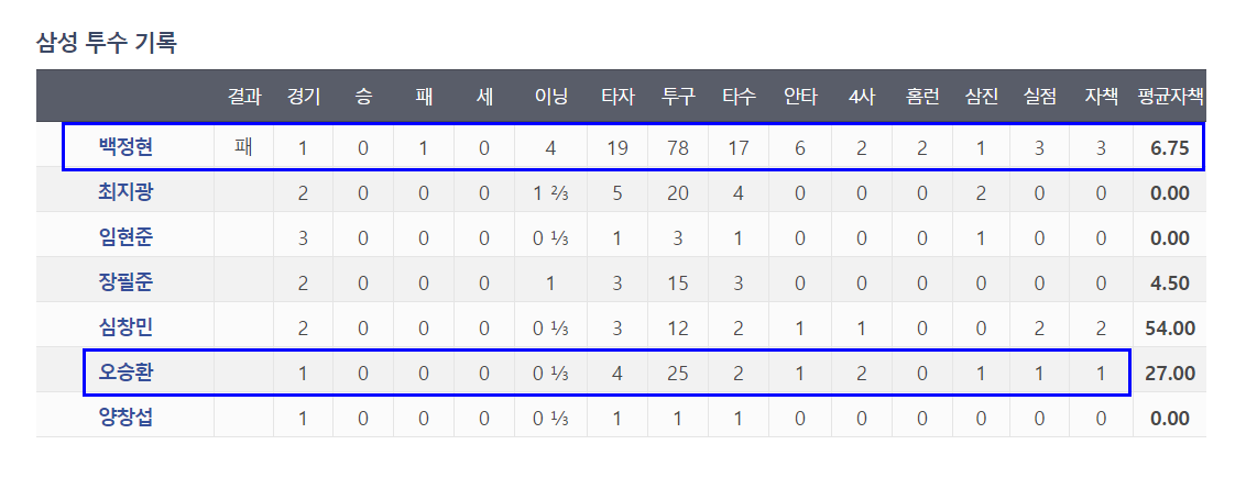 구속이 137km 언저리에서 형성되는 백정현을 계속 선발로 써야하는 삼성의 선발진 상황이 안타깝다.