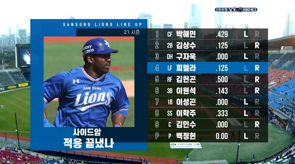 - 4번 좌익수 피렐라 우