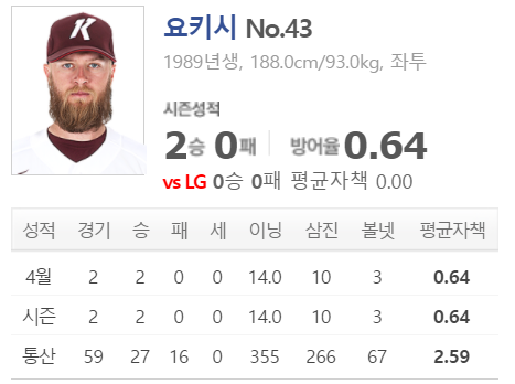 요키시 모르는 사람은 없을거라고 봅니다. 굳이 분석하지 않겠습니다. 최상급 투수입니다. 아 편하네..ㅋㅋㅋ 자주 등판좀..
