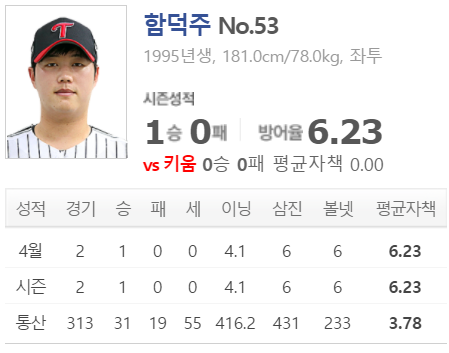 지난 KIA전 등판에서 5이닝 1피안타 6볼넷 1실점으로 첫 선발등판을 제구불안을 노출했지만 좋은 결과를 남겼습니다.