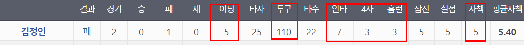 → 할 말이 많습니다. 5이닝 5실점 5삼진 3피홈런. 솔직히 폭망했다고까지는 생각하지 않습니다. 오히려 쳐맞으면서 110구를 던지면서도 꿋꿋히 잘 버텨줬습니다. 잠시 열폭 좀 하겠습니다.