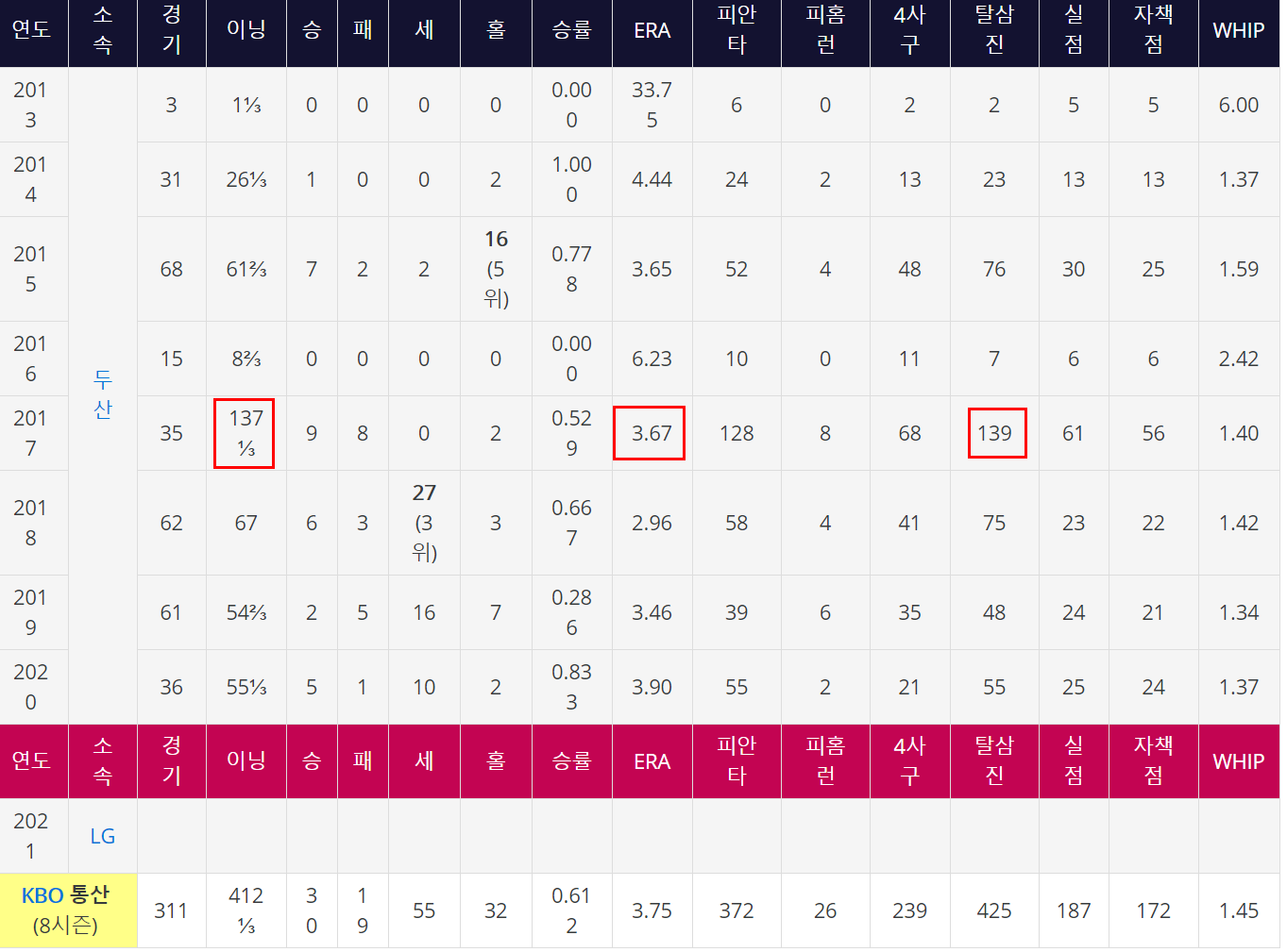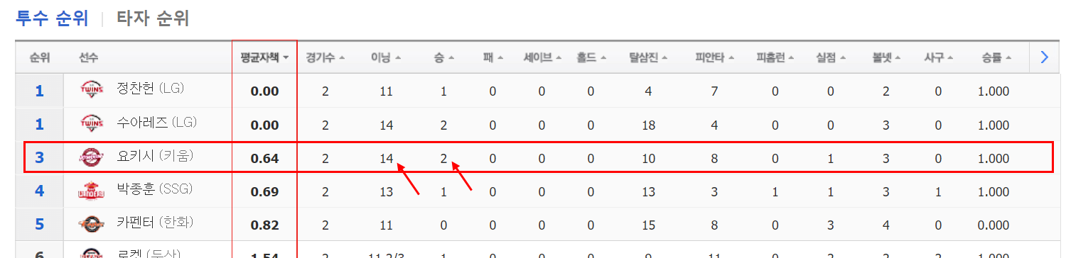 다음 등판에도 LG의 낙승을 쉽게 예상해볼 수 있는 계산이 가능한 투수가 한명 생겼네요.