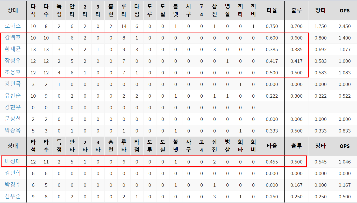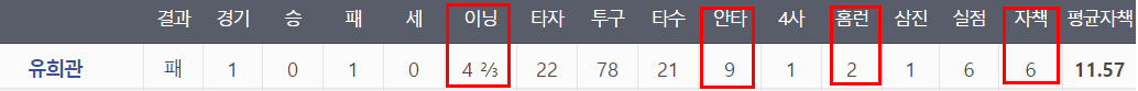 → 어제와 대조적으로 득점 찬스에서 득점을 내지 못하면서 경기를 쓸데없이 투수전으로 이끌고 간 주역입니다.