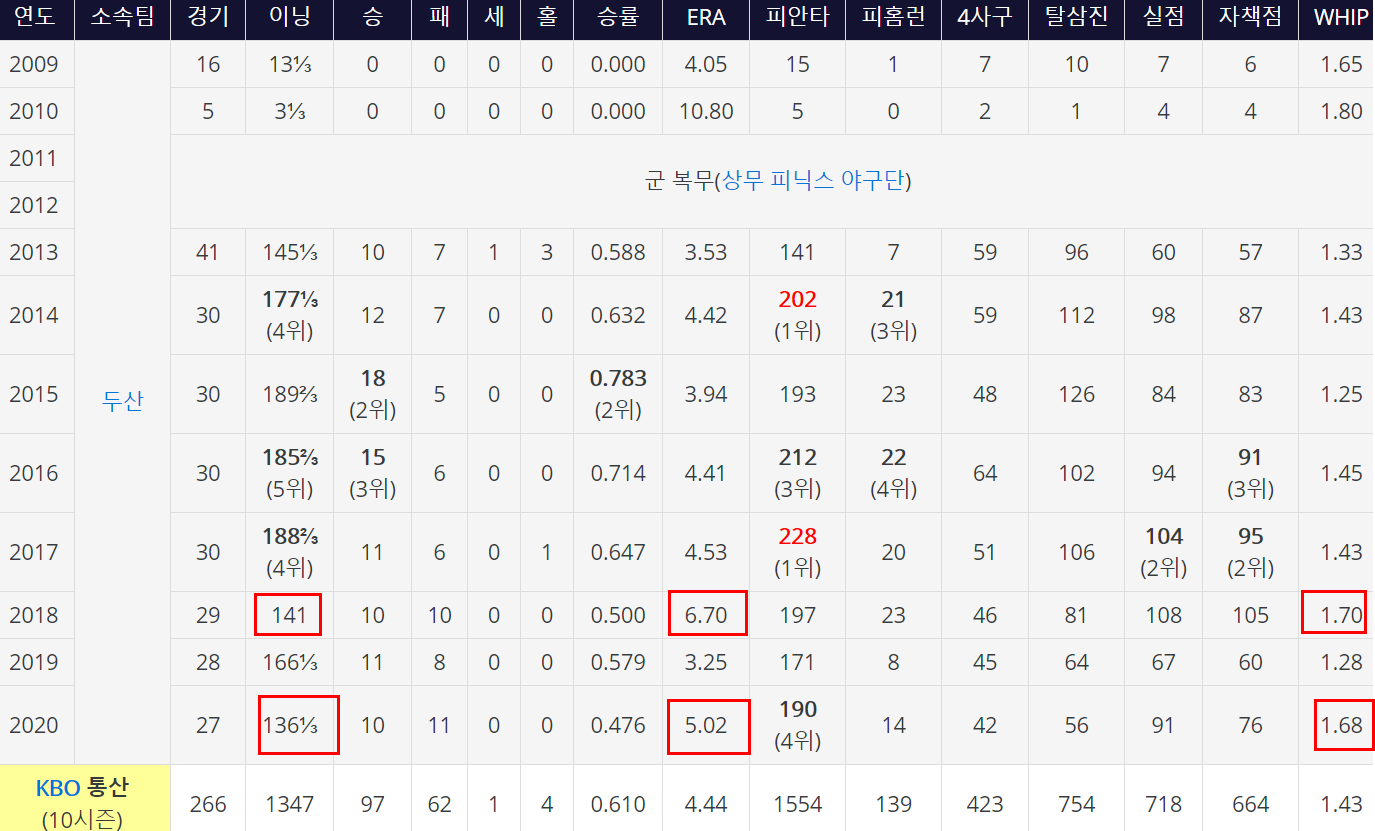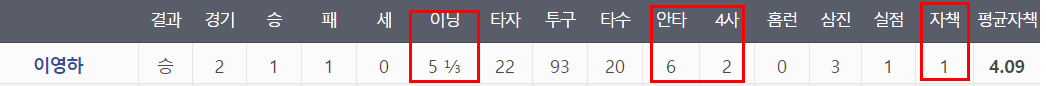→ 아.. 예상보다 잘버텼네요 두산타선이 얼타는 바람에.. 5이닝 3실점으로 선방했네요.