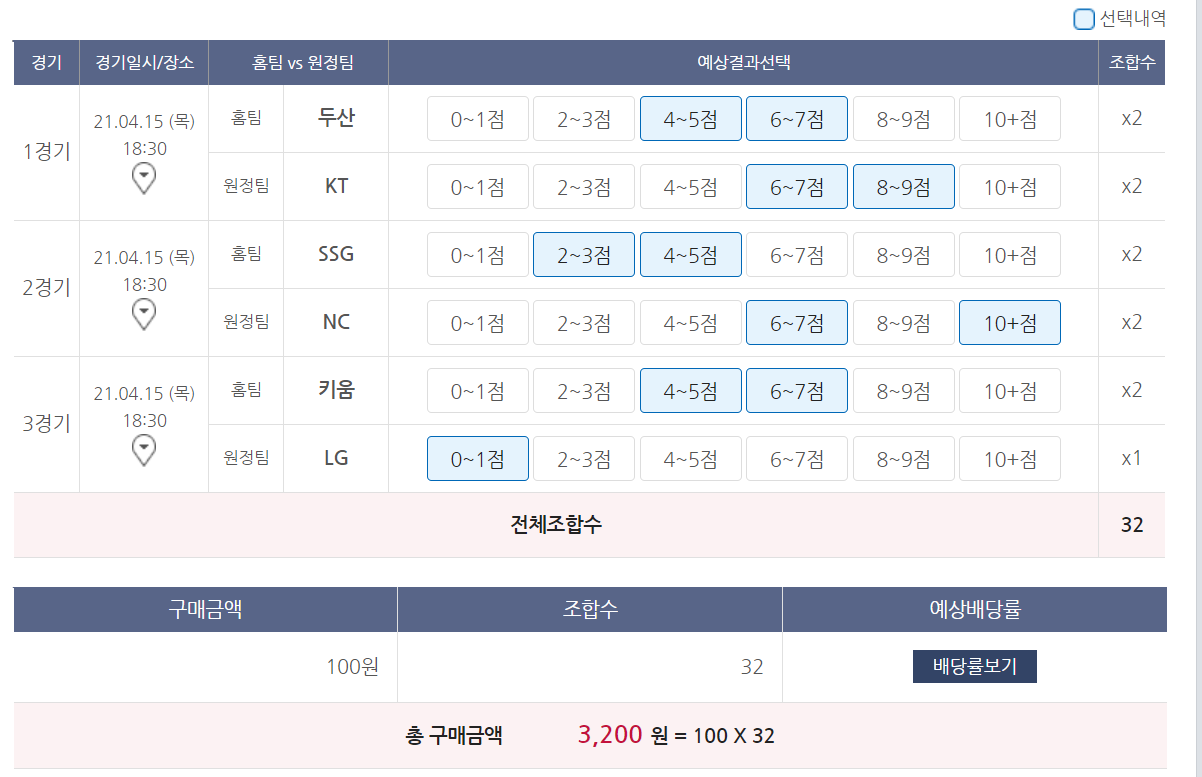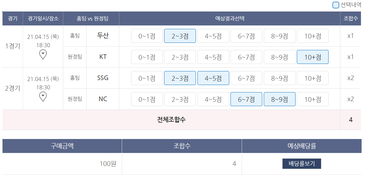 2021.04.15 - [분류 전체보기] - 21.4.15(목) 야구토토 스페셜 트리플/더블 10회차 예측픽(2)