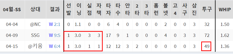 결정구로 쓰는 뛰어난 벌칸체인지업을 필두로 140을 왔다갔다하는 직구구속으로도 타자를 상대할수있는 경쟁력을 갖췄지만 아직 선발의 한축에 당당히 자리는 잡지 못하고 있다는 불안이 있다. 오늘은 신인을 상대하는 만큼 한결 편안하게 던질수 있을까?