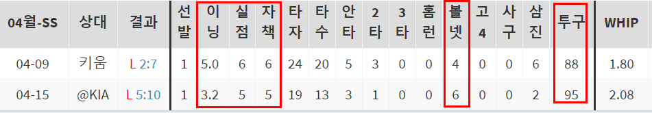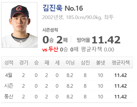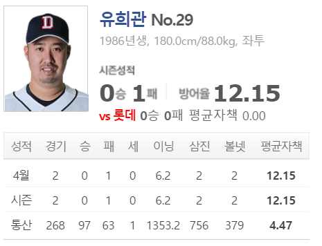 두산은 도대체 왜 계약을 한 것일까? 두산이 아니면 받아줄곳이 없다. 반등의 여지가 보이지 않는다면 사실상 이번시즌을 끝으로 은퇴다. 지난 KT전은 아예 초반부터 흔들리자 투구수가 남았는데도 바로 빼버렸다. 오늘은 절치부심해야만 1군에 살아남을수있다. 2군에는 곽빈이라는 유망주도 기다리고 있다.