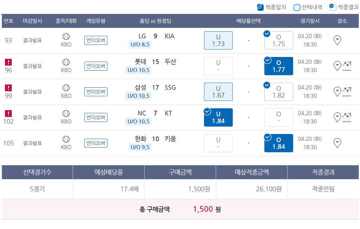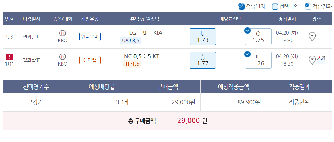 2021.04.21 - [야구/야구토토 분석] - 21.4.21(수) 야구토토 스페셜 트리플/더블 13회차 픽분석(3)