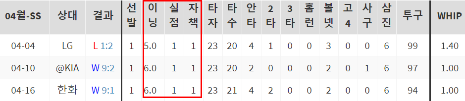 3번의 등판에서 모두 1실점만 기록하면서 팀승리의 발판을 마련했습니다.